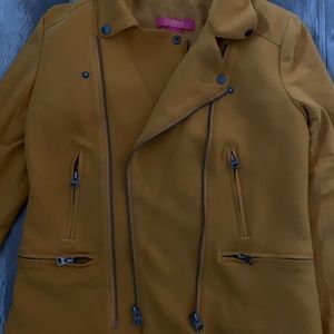 Mustard colored soft jacket. Can be zipped for a different look. Super soft and comfy