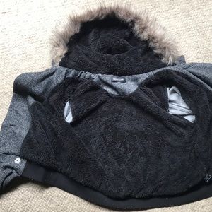 This cozy jacket is perfect for the fall! With fur on the inside and the hood, it will keep you warm.