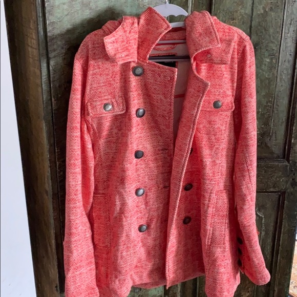 Soft like new jacket with detachable hoodie. Reddish. Blood orange
