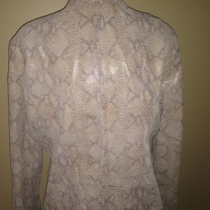 Snake embossed leather jacket,sz 1X, color is purple/cream combo, fully lined