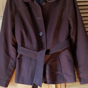 Ll bean jacket. Worn once. Excellent condition! Dark brown. Belted. 18 " from shoulder to shoulder. 27.5 in length. Lined. Warm. Petite