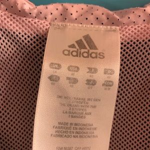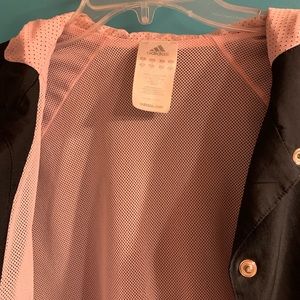 Lightweight Adidas jacket, black on the outside and pink on the inside.