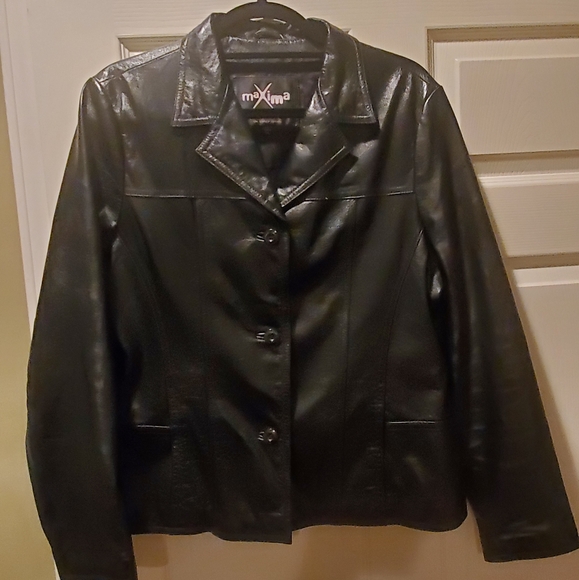 Black leather 3-button jacket