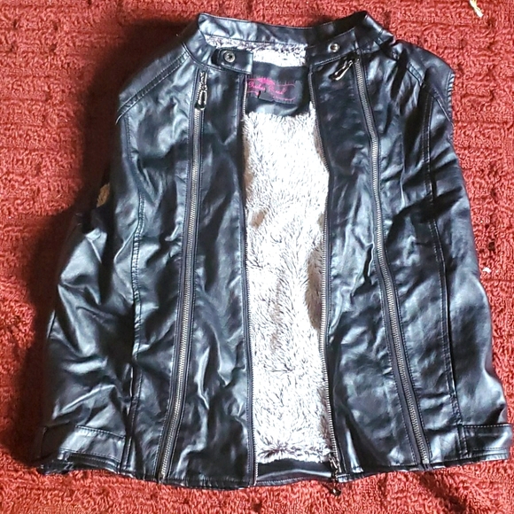 Black soft fluffy on the inside leather on the outside short-sleeved