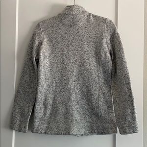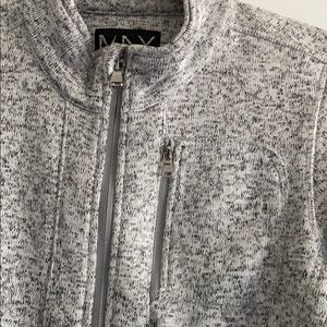 Zip up jacket. Soft comfortable material. Perfect for walking exercise in the cold mornings. Has one zipper pocket and two without zippers. Goes well with any color leggings of pants.