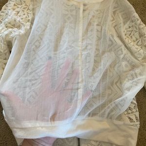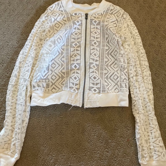 This is a sheer jacket from Hollister it’s length is about to right above the hip. It’s been worn maybe once and is in great condition.