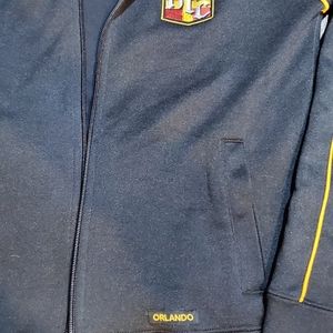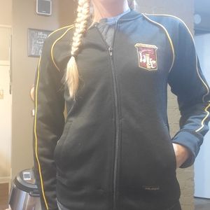 HARD ROCK CAFE zip up jacket black with yellow trim and red and yellow Hard Rock logo