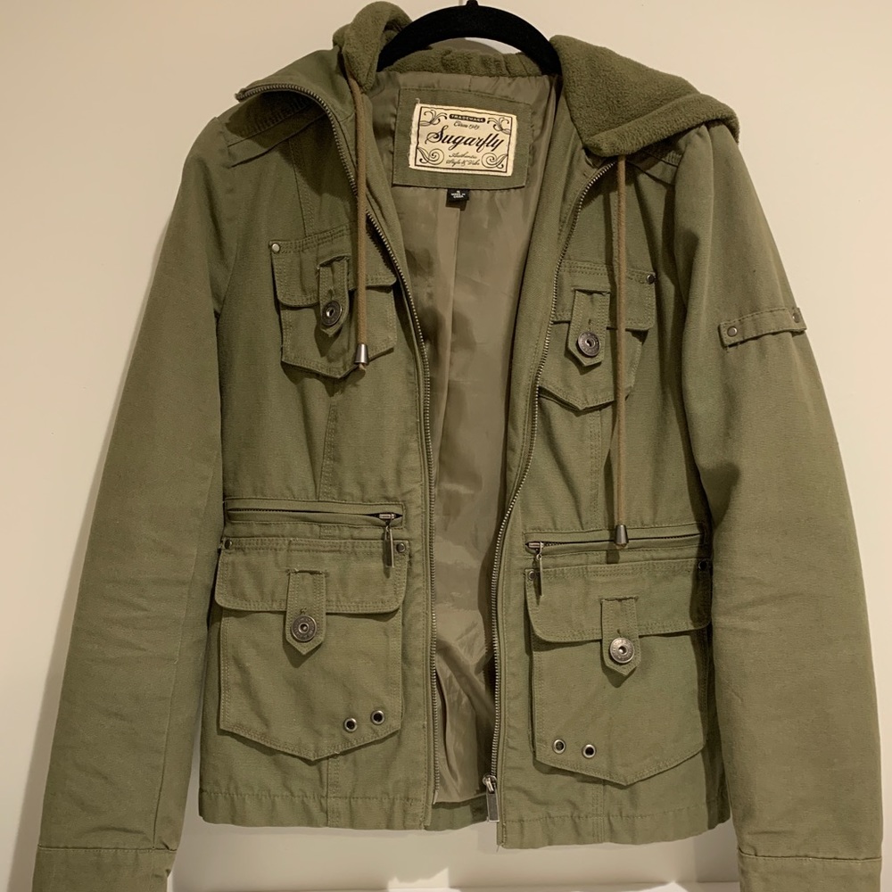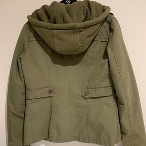 Army green jacket with sweatshirt hood