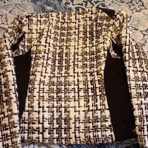 Gray,white tweed with,leather shoulders