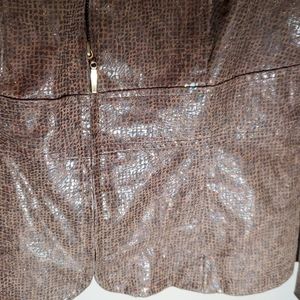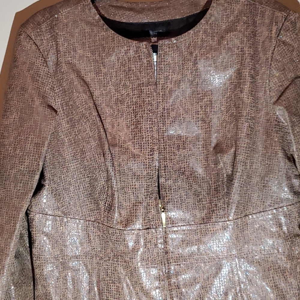 Taupe sparkly LEATHER waist length jacket. Fitted at waist very tailored.