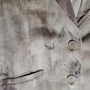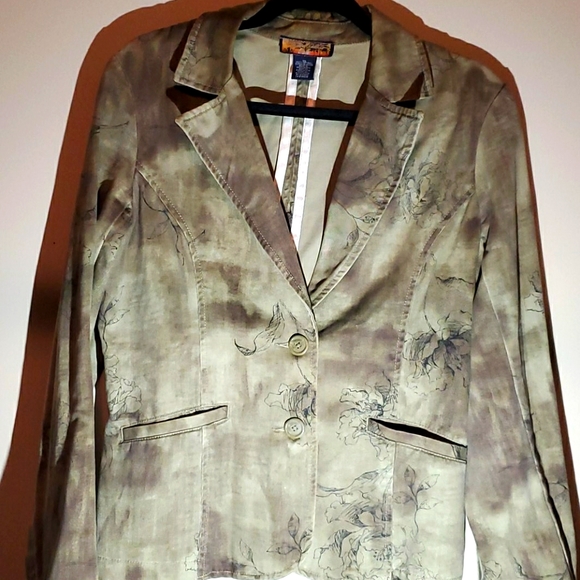 Almost camouflage and almost a tie dye flowered army green waist length blazer - there I've said it. Still available