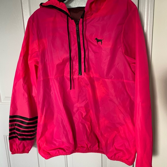 Pink rain material jacket - never worn but slightly discolored from sitting in room with windows
