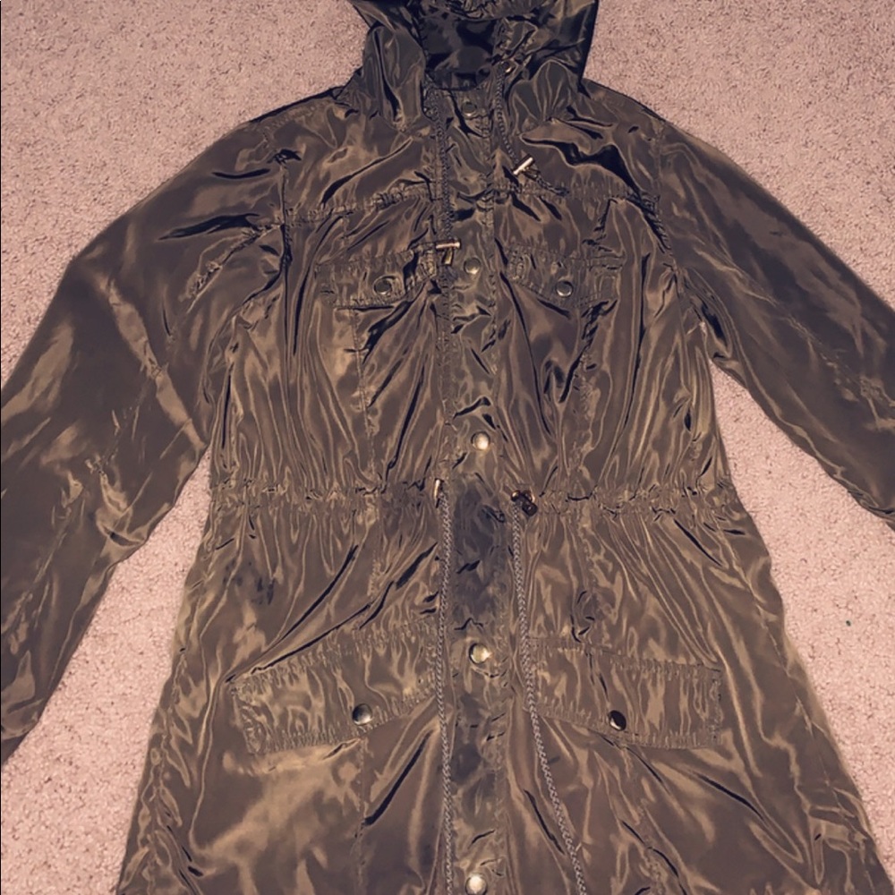 Silky jacket. Does have a tear in the right arm by the armpit