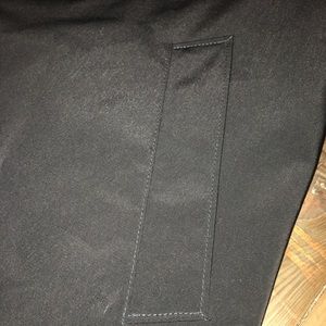 Long black jacket with pockets. No tag with size in it but from my guess it’s a size large. Good condition.