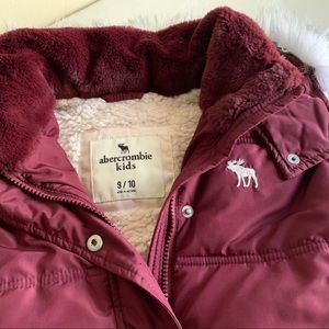 Abercrombie kids sherpa lined puffer jacket with a removable faux fur trim hood