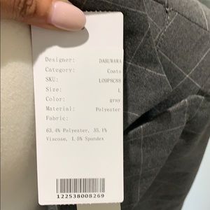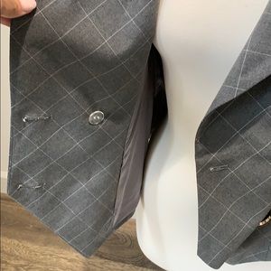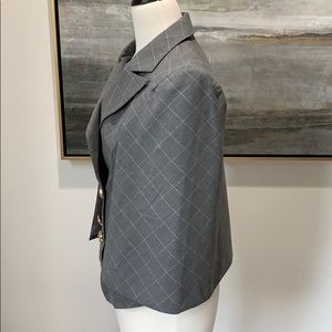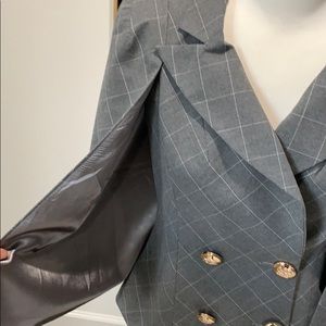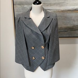 Grey pin strip NWT cape style double breasted jacket with gold button closure