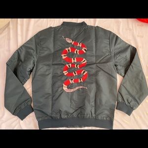 Chartou Men's Classic Snake-Embroidery Lightweight Flight Baseball Jacket Windbreaker (Medium, Green)