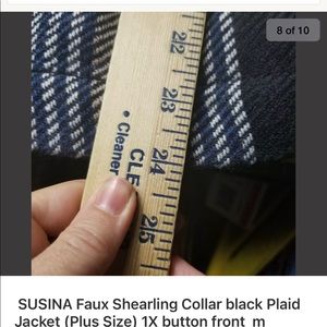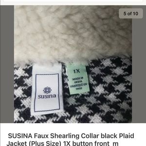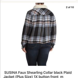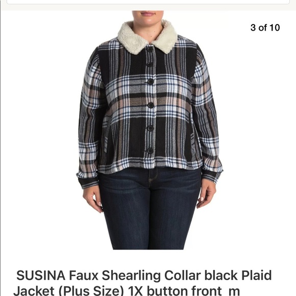 Adorable plaid jacket with black and white inside. Shearling collar.