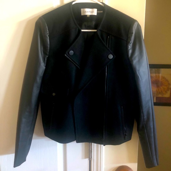 Moto mixed media vegan leather jacket