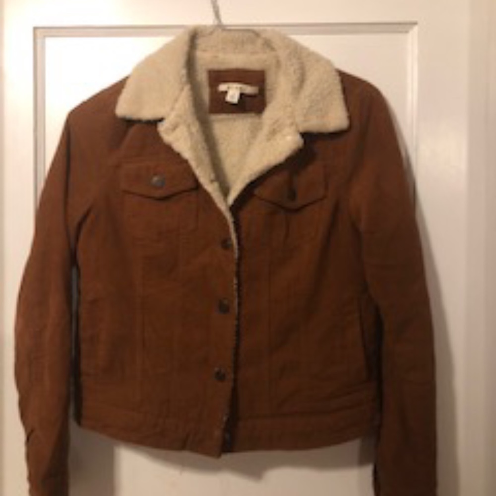 Rust Colored Corduroy jacket with fleece lining and "jean jacket" style - great fall cozy coverup!