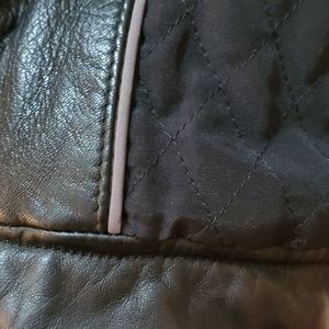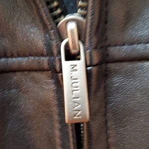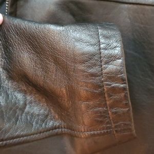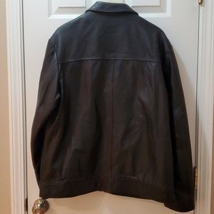 Mens, leather, black, zip up, slant pocket, 2 inside pockets