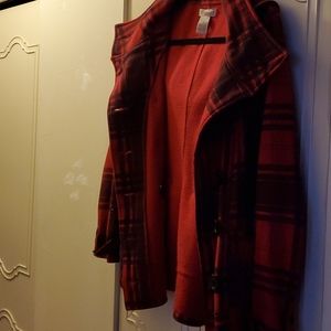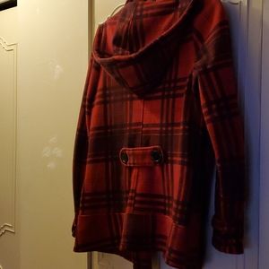 Paide jacket for women it have a hood and bottom down the front and two bottom at the back, it can wear in the spring.