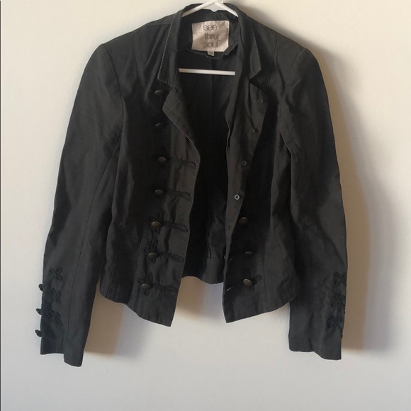 See Thru Soul jacket with militaristic embellishments. Was purchased at Anthropologie.