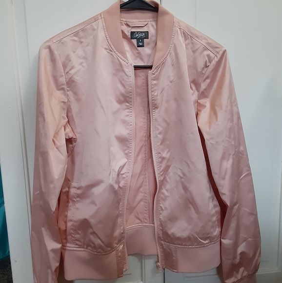 Thin pink jacket, 4 pockets 2 on outside 2 on inside, zip up