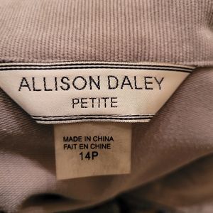 This vintage jacket is from the 1990. It's A cute old fashion jacket it is for a petite size in are length wise. Has built in should pads. Gray corduroy type feel. Has pink, white, light blue flowers embedded on the front of it. Still has the tag on it.