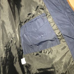 navy blue jacket with bags in front 100% polyester in very good condition and very warm
