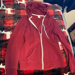 Red zip up jacket from zumiez. I no longer reach for it. Can fit a small as well still has life to it :) this style can run small