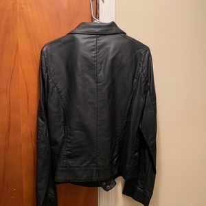 Faux leather lined jacket - with a removable faux fur collar - jacket has four non zip pockets with burnished silver studs.