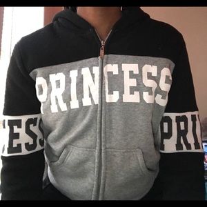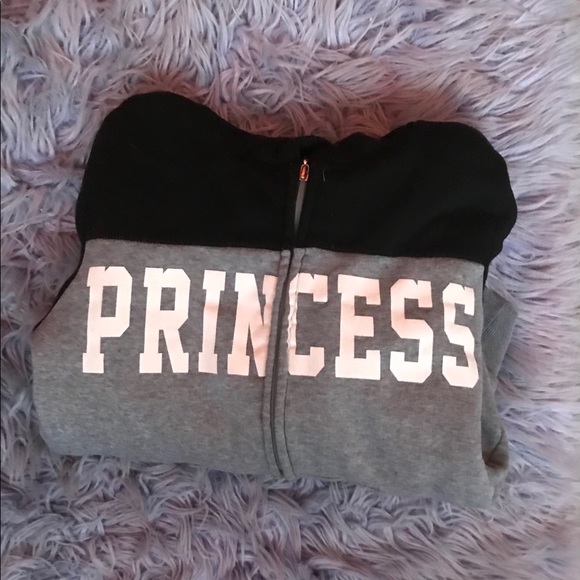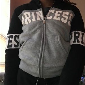 A black and grey jacket that says princess