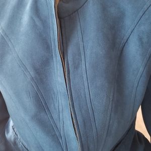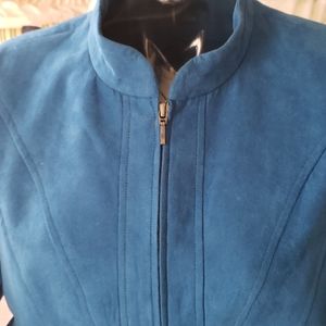Faux suede (soft) zippered front..snapped cuffed sleeves..cropped waistline ..TURQUOISE