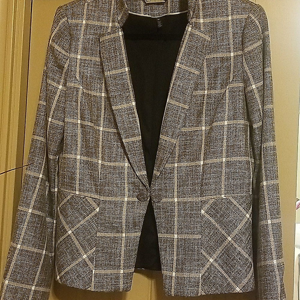 Frey and white plaid waist jacket
