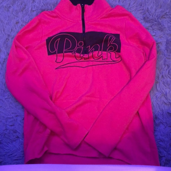 Pink jacket with black zipper. Comes with pouch in the front. No hood