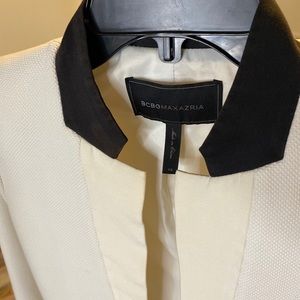 BCBG MAXAZRIA OFF White jacket with cream & black collar. High shoulder and very fitting.