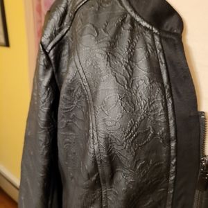 Embossed faux leather jacket with knit sides and underarms for perfect fit size 18w