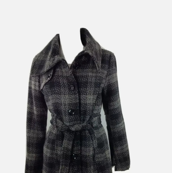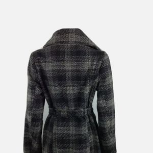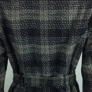 Valerie Stevens Womens Jacket with Tie Belt Plaid Grey Medium Retails $120.00