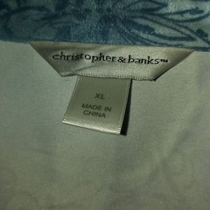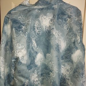 Pale blue and white jacket with button front closure