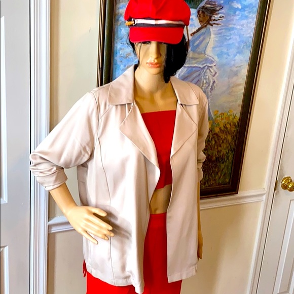 Short Trench Jacket in Khaki cotton. Open in front. No tags, never worn. Size L