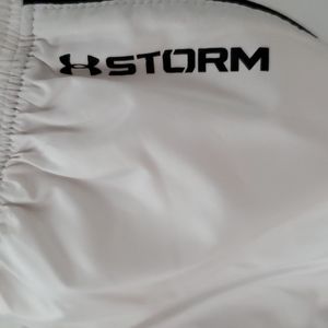 Light green, white and gray windbreaker from UnderArmour. Lightweight & weatherproof and quick drying!