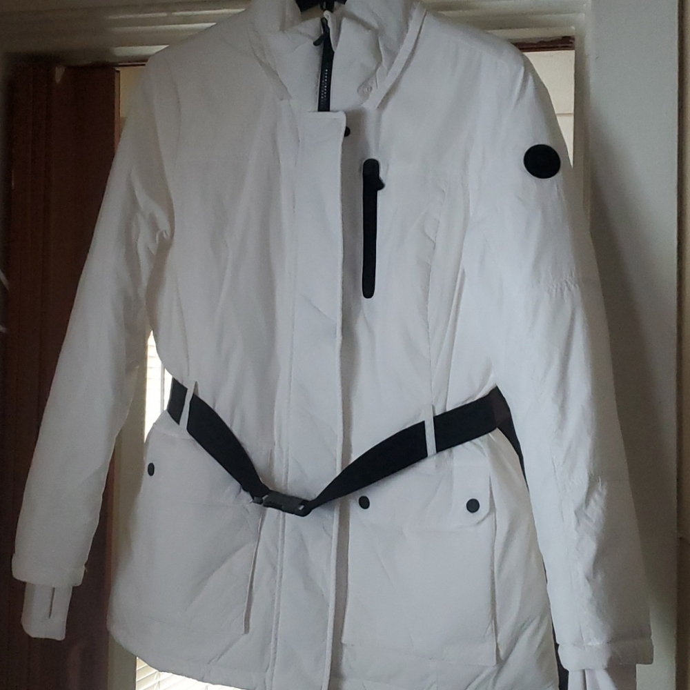 Brand new worn once Michel Kors Puffer Jacket. Has belt with MK on it and has detachable extra collar with Michael Kors on it. Very soft and warm lightweight