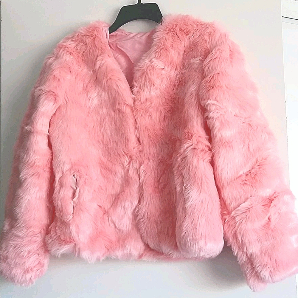 "NEVER WORN" BRAND NEW.. Sexy Extra Soft Pink No Shed Extra Furry Jacket W/Pockets & Invisible White Hook Front Closures to Close Jacket..Very Well Made ... Looks as Pictured.... Sexy... Stylish...And Great For Fun Night On The Town Or Dressy W/Jeans Size XL But I Think it's marked wrong more like a Large...Also the Fur is so plush & thick I couldn't pull the sleeves all the way thru. There are no Rips or Tears anywhere Never Worn