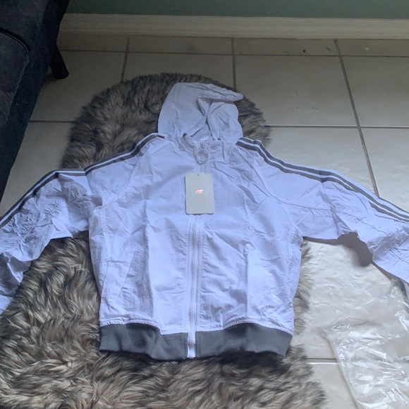 Wrinkly from being in the packaging. Brand new with tags. Accidentally ordered two. Light weight super cute jacket.