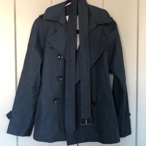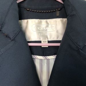 Coach navy jacket. Excellent condition. Detachable belt.
