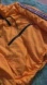 Bright orange jacket with zipper in the middle for storing things.