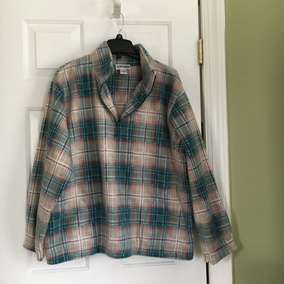 Fleece plaid jacket; zipper on front at neck; elastic wrists; Never worn :(