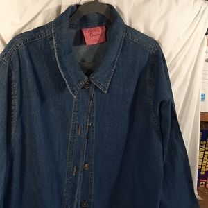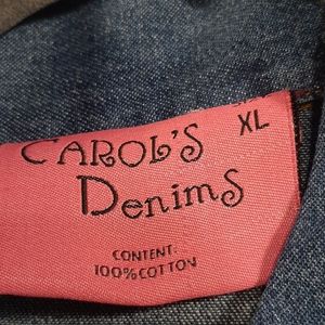 CAROL'S DENIMS lightweight 3/4 length denim jacket with 5 button closure and embroidered leaf pattern on front pockets
