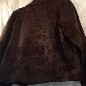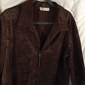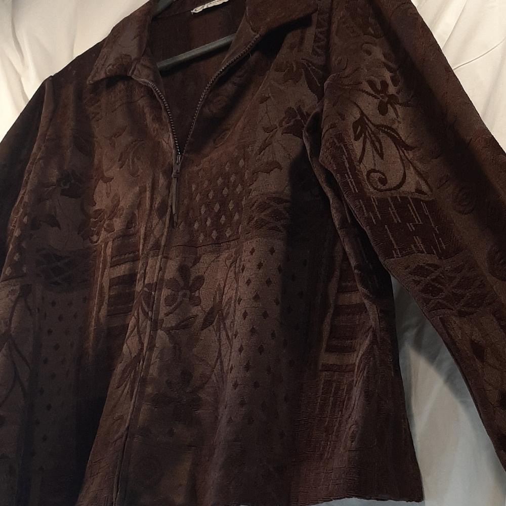 DRESS BARN Chocolate brown zip front satin and velvet brocade makes for a yummy lightweight jacket perfect for those cool spring or summer nights